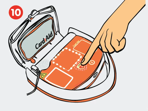 Gaivinimo veiksmai su CardiAid defibriliatoriumi – 11 žingsnis